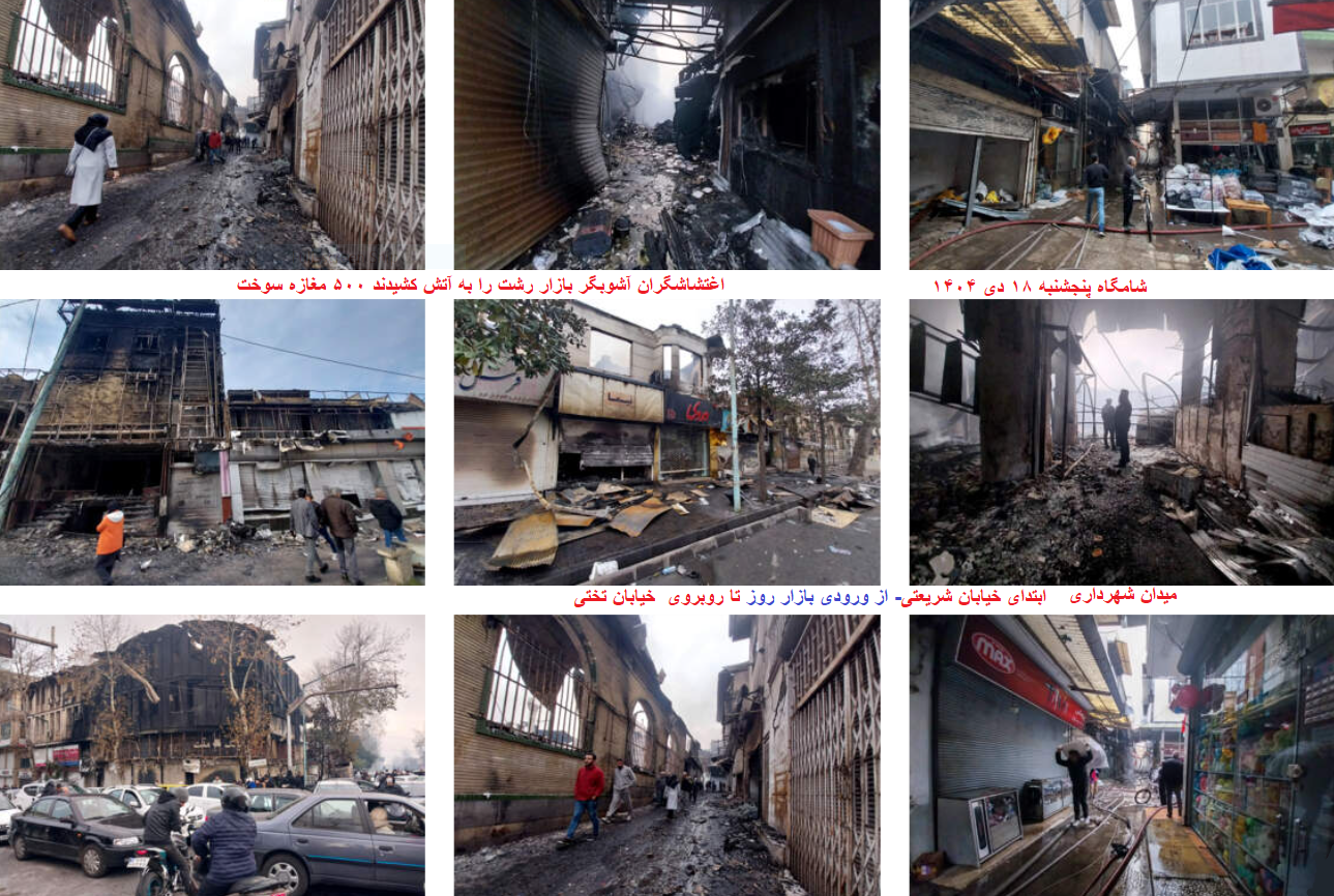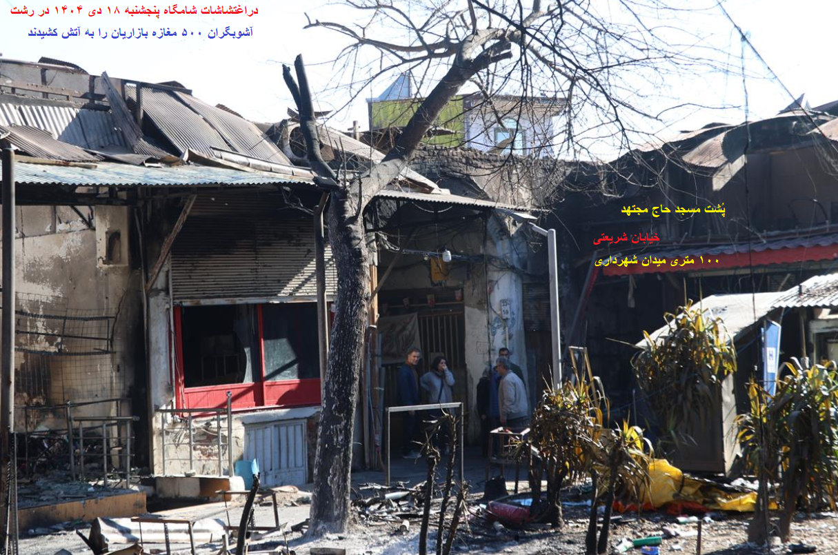 بیش از ۴۰۰ مغازه دربازارسُنّتی رشت توسط «اغتشاشگران فتنه گر»به آتش کشیده شد(خیابان شریعتی)اطراف مسجدحاج مجتهد.
