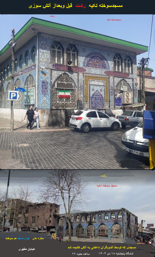 «اسامی مساجد رشت که توسط اغتشاشگران به آتش کشیده شد»: