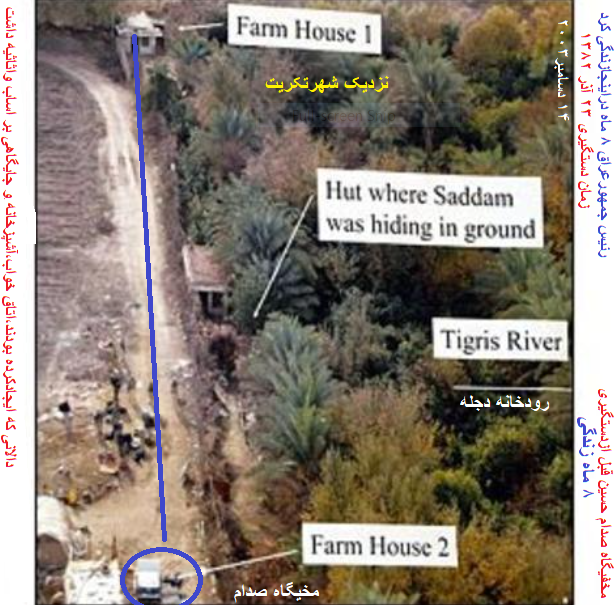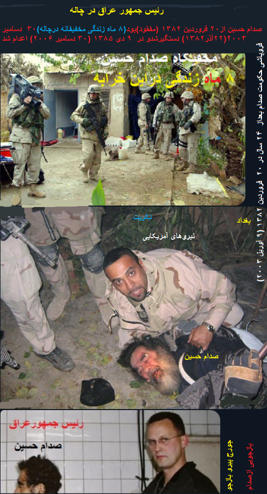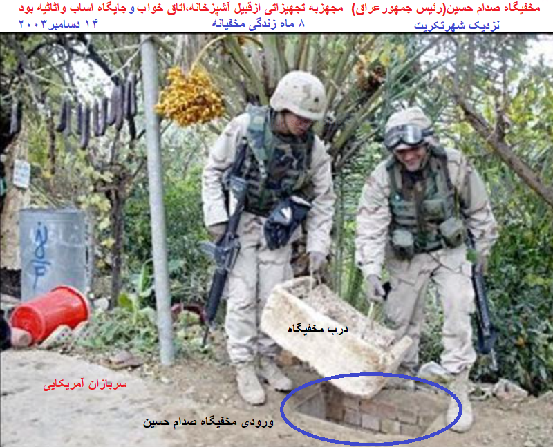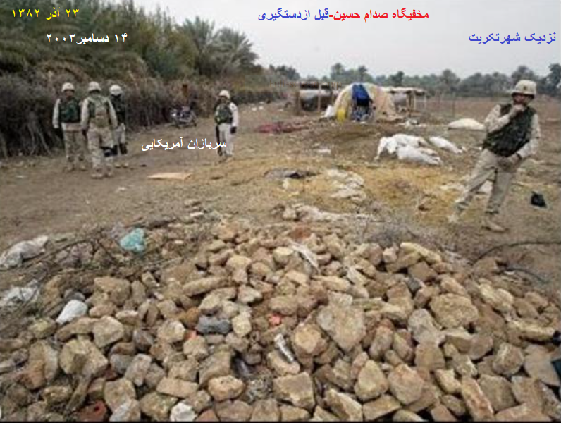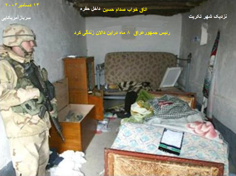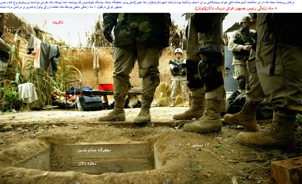 «صدام حسین» از۲۰ فروردین ۱۳۸۲ الی ۲۲آذر۱۳۸۲متواری-مفقود-بود.