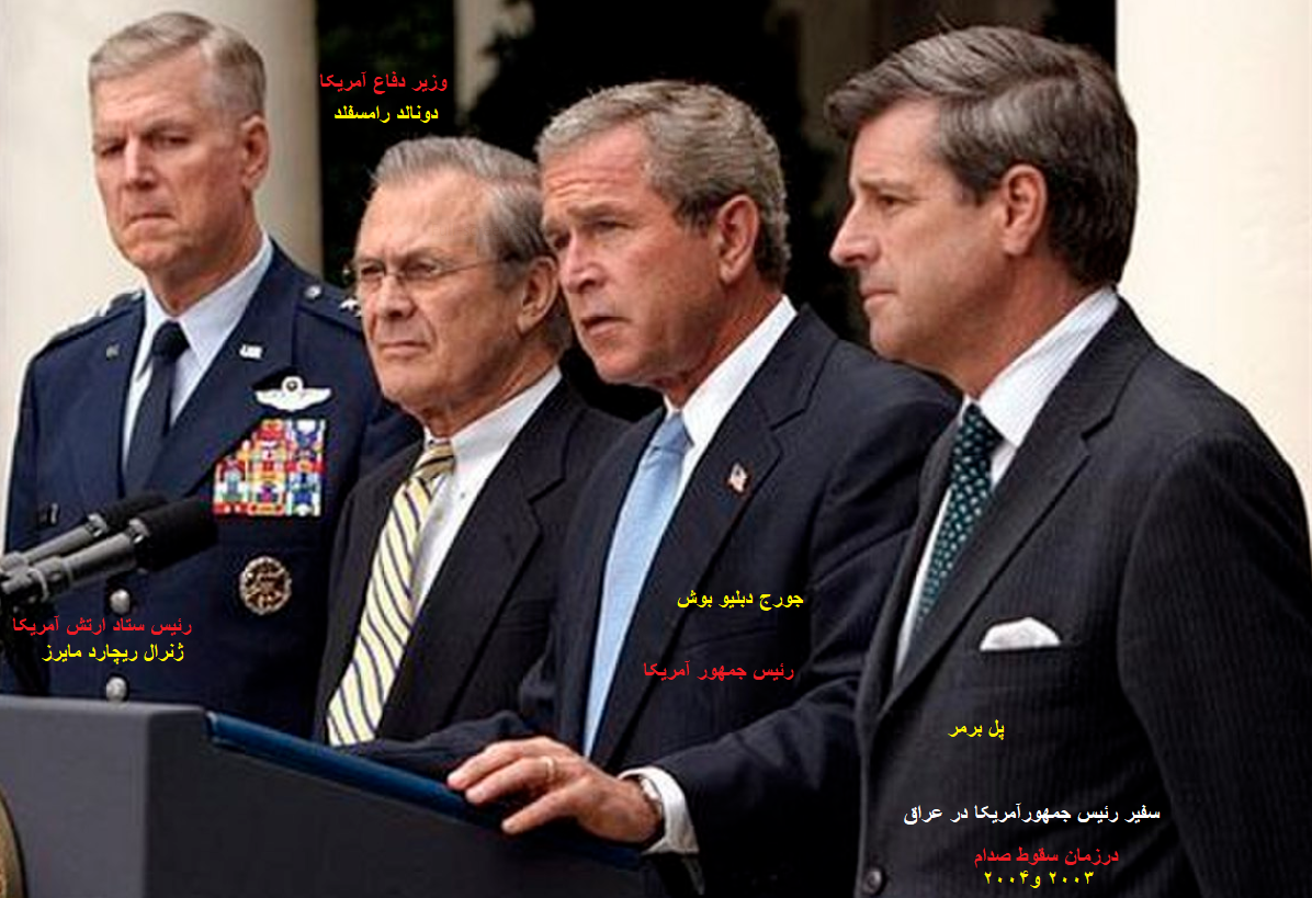 «ژنرال دیویدپترائوس»(فرمانده نظامیان آمریکادرعراق و«پل برمر»حاکم عراق(نماینده رئیس جمهورآمریکا-جورج بوش)