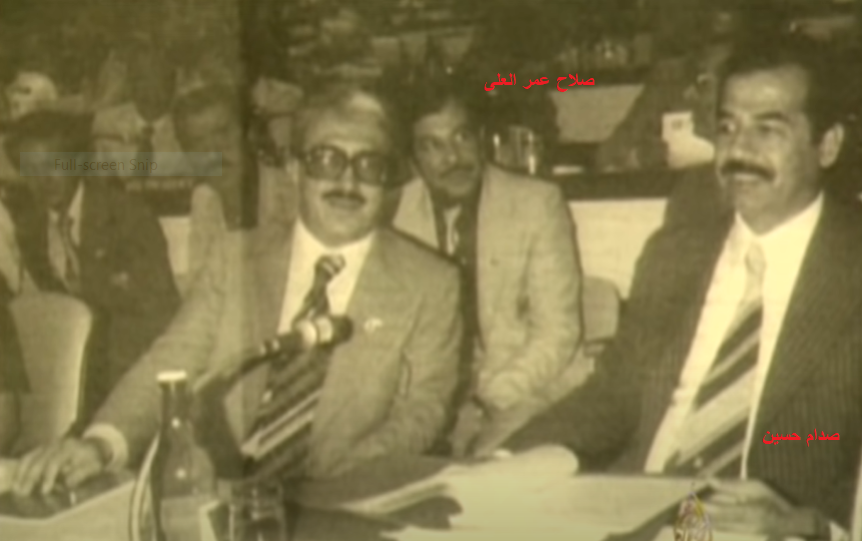 «صلاح عمرالعلی»(عضوشورای رهبرحزب بعث عراق)و «صدام حسین»(رئیس جمهورعراق).