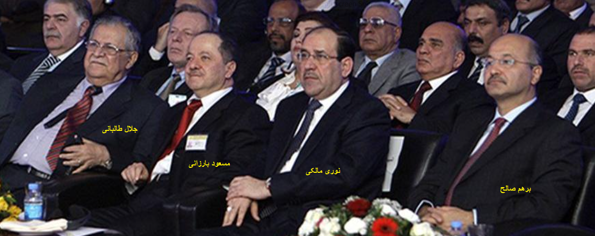 «عبدالطیف جمال رشید»، «نوری المالکی»، «فؤادمعصوم»، «عادل عبدالمهدی»، «بافل طالبانی» ۱۴ مهر ۱۳۹۶(مراسم خاکسپاری جلال طالبانی) ۱۴ مهر ۱۳۹۶