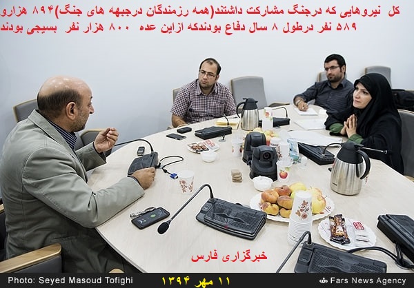 «کُل نیروهایی که درجنگ مشارکت داشتند»(همه رزمندگان درجبهه های جنگ)۸۹۴ هزارو ۵۸۹ نفر درطول ۸ سال دفاع بودندکه ازاین عده ۸۰۰ هزار نفر بسیجی بودند.