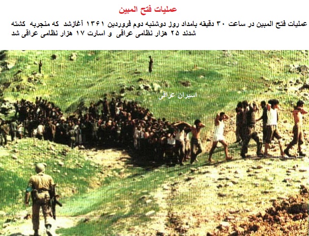 «عملیات فتح المبین» در ساعت ۳۰ دقیقه بامداد روز دوشنبه دوم فروردین ۱۳۶۱ آغازشد ۲۵ هزار نظامی عراقی کشته و ۱۷ هزارنظامی عراقی اسیر شدند.