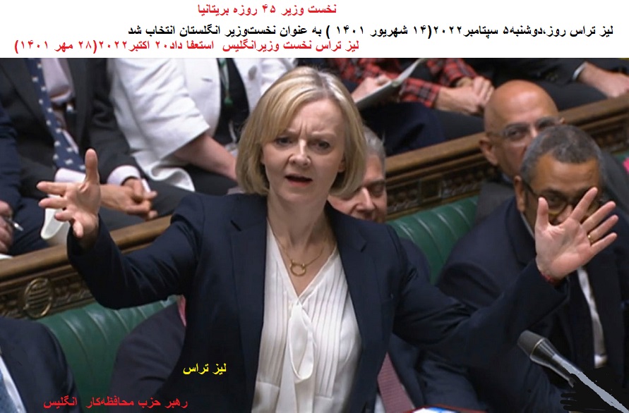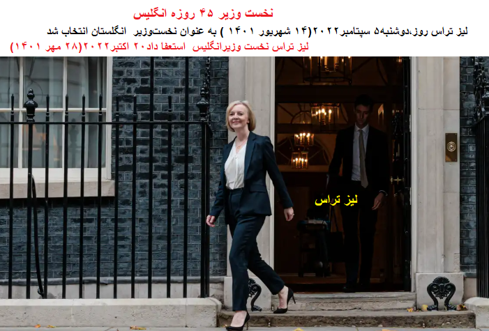 لیز تراس«نخست وزیرانگلیس» استعفا داد۲۰ اکتبر۲۰۲۲(۲۸ مهر ۱۴۰۱)پنجشنبه.