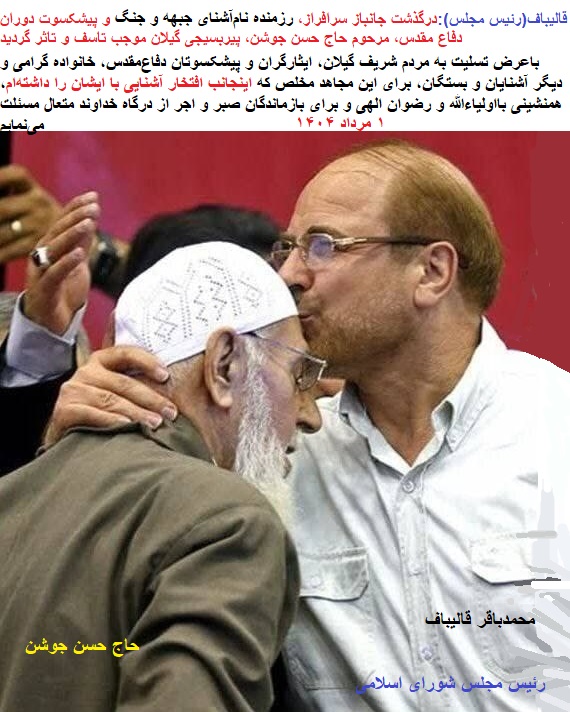 «پیام تسلیت رئیس مجلس شورای اسلامی»بمناسبت در گذشت حاج حسن جوشن