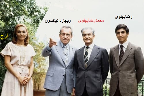بترتیب ازراست:رضاپهلوی،فرح پهلوی،محمدرضاپهلوی
