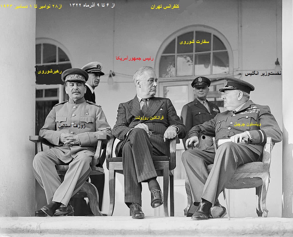 توضیح مدیریت سایت-پیراسته فر:«کنفرانس تهران»از ۶ تا ۹ آذرماه ۱۳۲۲ (۲۸ نوامبر تا ۱ دسامبر ۱۹۴۳) درسفارت شوروی برگزارشد.