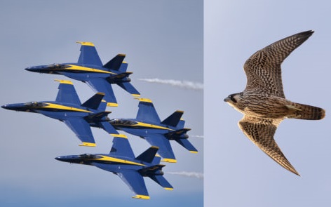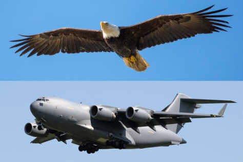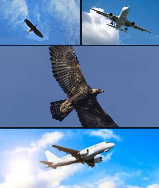شباهت بین نحوه اوج گرفتن عقاب و هواپیما بیشتر هواپیماها در قسمت سر مانند سر عقاب طراحی شده اند و دارای یک قسمت تیز مانند عقاب هستند و بالهای خود را دقیقا مانند عقاب به مرور زمان در طول اوجگیری باز می کنند.قسمت نوک در عقاب و قسمت نوک مانند هواپیما به اوجگیری آن کمک می کند.