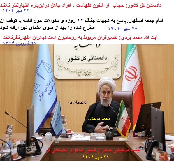 «حجت الاسلام محمد موحدی»(دادستان کل کشور )با تاکید بر اینکه اظهار نظر در مورد احکام اسلامی از «شئون فقهاء عظام» و دانشمندان اسلامی است نه غیرمتخصص، تصریح کرد: به عنوان مثال «حجاب یک امر قرآنی و شرعی است و افراد غیرکارشناس و جاهل در رابطه با این موضوع نباید اظهارنظر کنند.»