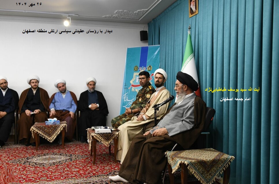 آیت الله سید یوسف طباطبایینژاد، امام جمعه اصفهان، در دیدار با رؤسای عقیدتی سیاسی ارتش منطقه اصفهان/۲۷ مهر ۱۴۰۴خبرآنلاین