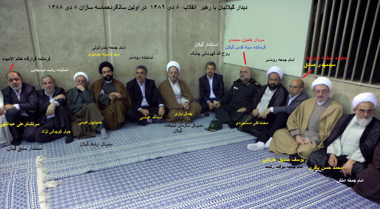 «دیدار گیلانیان با رهبر معظم انقلاب در اولین سالگرد حماسه ۸ دی»دیدار ۸ دی ۱۳۸۹ «حجت الاسلام صدیق عربانی» درکنار سرلشکر علی عبدالهی(فرمانده قرارگاه خاتم الانبیاء)،سردار هامون محمدی(فرمانده سپاه قدس گیلان)،،قهرمانی(استاندار)و ائمه جمعه شهرستانهای گیلان و نمایندگان مجلس ومدیران کل گیلان.