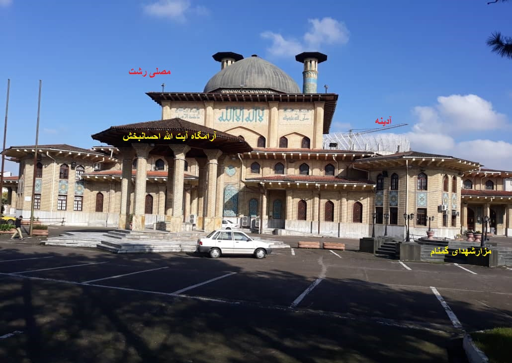 «مجتمع آدینه»مصلی رشت(میدان توشیبا-سابق)مزارآیت الله احسانبخش و ۸ شهید گمنام جنگ تحمیلی(در۲ طرف آرامگاه احسانبخش)