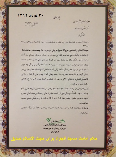 ماجرای برکناری ومعرفی امام جماعت مسجد الجواد(لاکانی) رشت