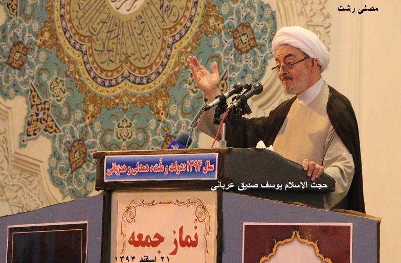 امام جمعه موقت رشت«حجت الاسلام یوسف صدیق عربانی»(نمازجمعه ۲۱ اسفند ۱۳۹۴)مصلی رشت.