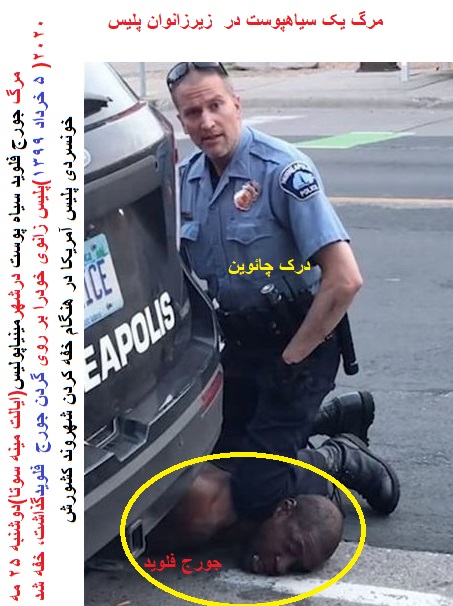 در ۲۵ مه ۲۰۲۰( ۵ خرداد ۱۳۹۹)پلیس(درک چائوین) شهر( مینیاپولیس) ایالت مینهسوتا، زانوی خود بر روی گردن (جورج فلوید)گذاشت ،خفه شد.