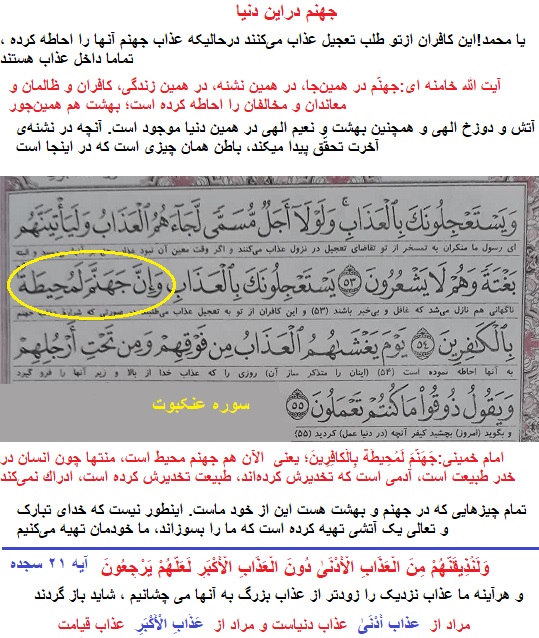 «إِنَّ جَهَنَّمَ لَمُحِیطَةٌ بِالْکَافِرِین» آیه ۵۴ عنکبوت(درجهنم هستند درهمین دنیا)