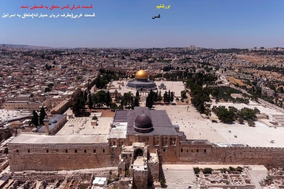 توضیح مدیریت سایت-پیراسته فر: «قدس»(مسجدالاقصی)در شهر«اورشیلیم» واقع است، یکی ازشهرهای اسرائیل است وهمین «بیت المقدس» بخشی درتصرف اسرائیل است،یعنی دیوارغربی که به«دیوار ندبه»معروف است که یک عبادتگاه مقدسی برای اسرائیلی هااست برای گرفتن حاجات به آنجامی روند.