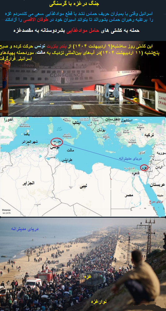 حمله پهپادی به کشتی حامل کمکهای بشردوستانه به مقصد غزه؛ منابع حیاتی غزه رو به اتمام است