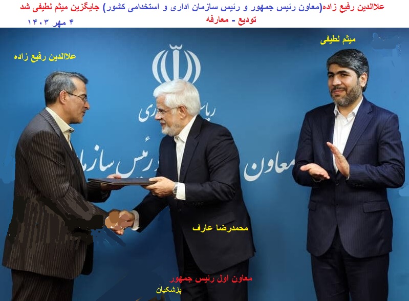 توضیح مدیریت سایت-پیراسته فر:۴ مهر ۱۴۰۳«علاالدین رفیع زاده(معاون رئیس جمهور و رئیس سازمان اداری و استخدامی کشور)«جایگزین میثم لطیفی)شده بود.