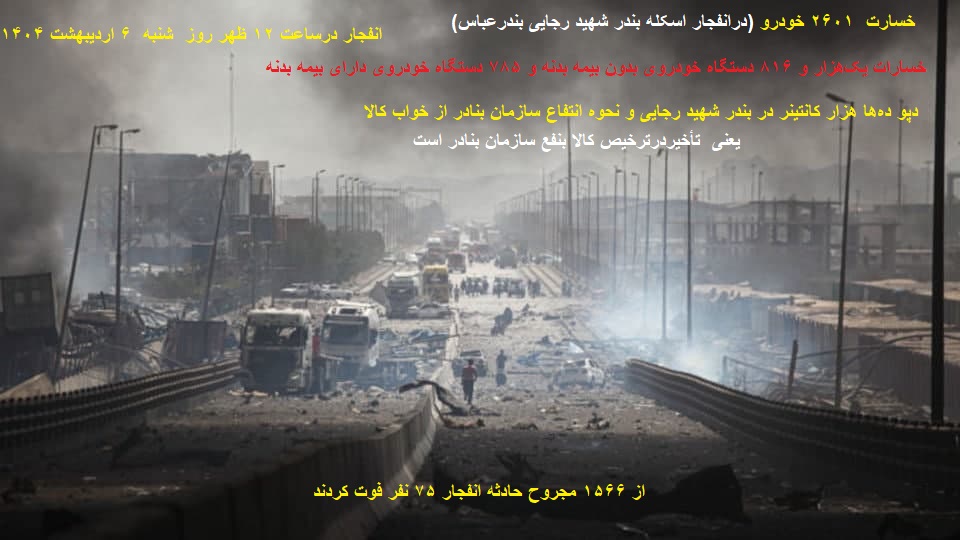 «آخرین آمارتلفات اسکله شهیدرجایی بندرعباس»(۸ اردیبهشت ۱۴۰۴):از ۱۱۰۰ مجروح :۷۰ نفر فوت کردند و ۱۲۰ نفر دربیمارستانها بستری هستند(با افزایش پنج نفری فوت شدگان به ۷۵ رسید)