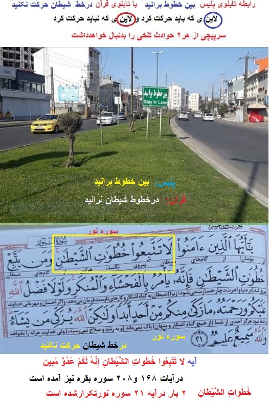 رابطه توصیه قرآن«لَا تَتَّبِعُوا خُطُوَاتِ الشَّیْطَان» باتابلوی پلیس«بین خطوط برانید»
