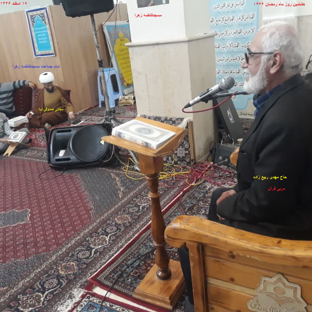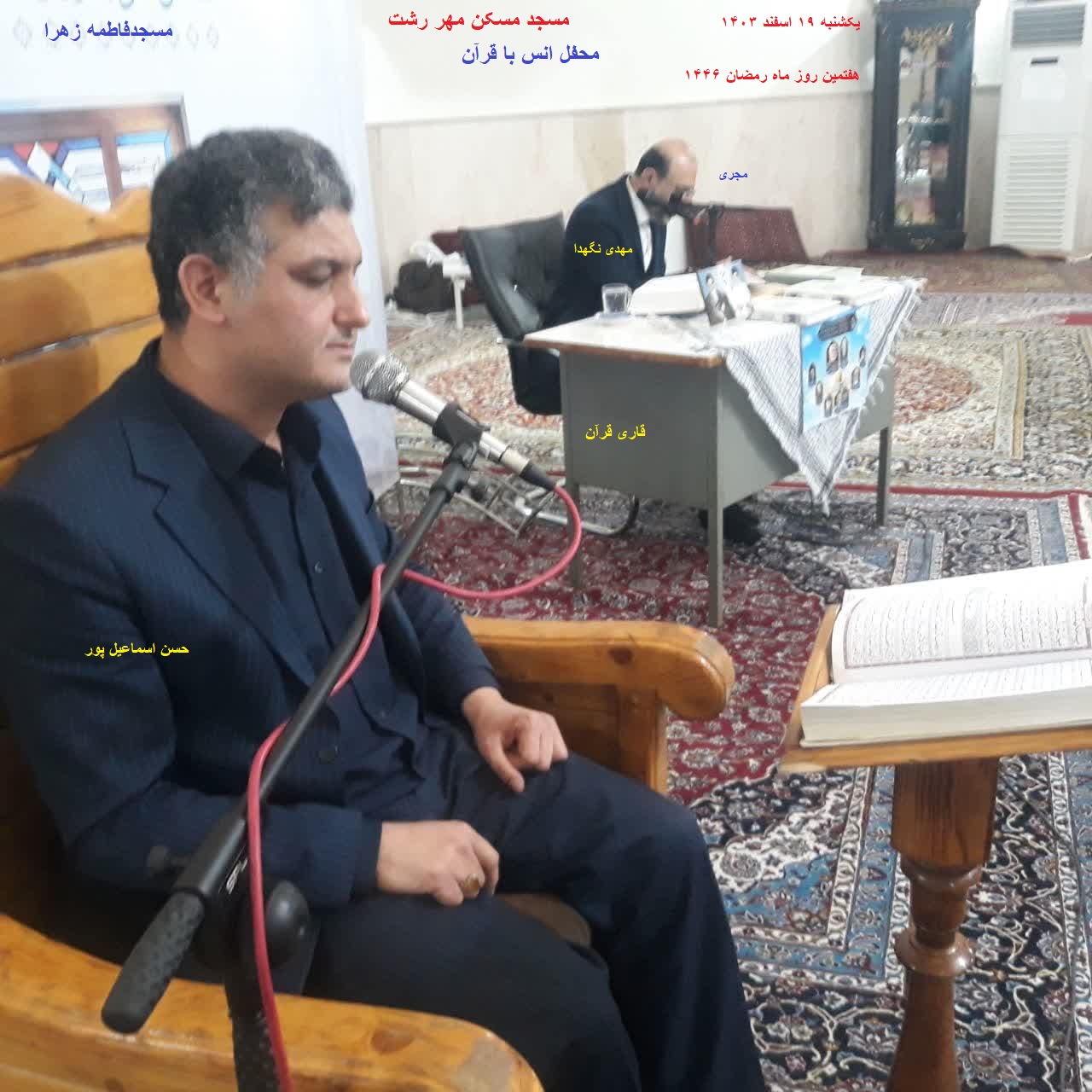 محفل انس باقرآن مسجدفاطمه زهرا(مسکن مهر رشت)۱۹ اسفند ۱۴۰۳ درهشتمین روز ماه رمضان ۱۴۴۶