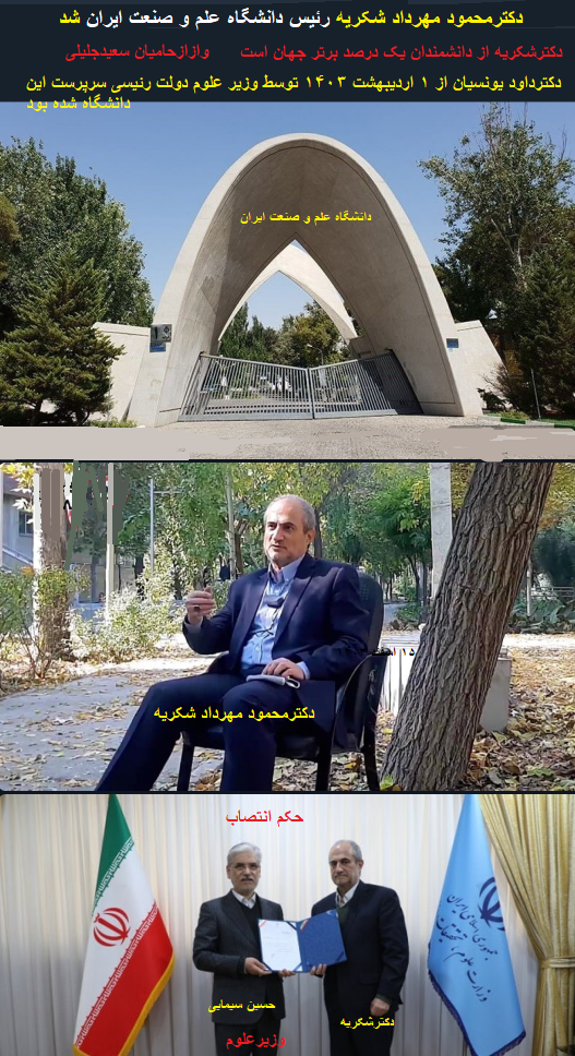«دکترمحمود مهرداد شکریه»استاد برجسته مهندسی مکانیک فرهنگستان علوم و «دانشمندان یک درصد برتر جهان» است.(وی ازحامیان سعیدجلیلی درانتخابات بود)