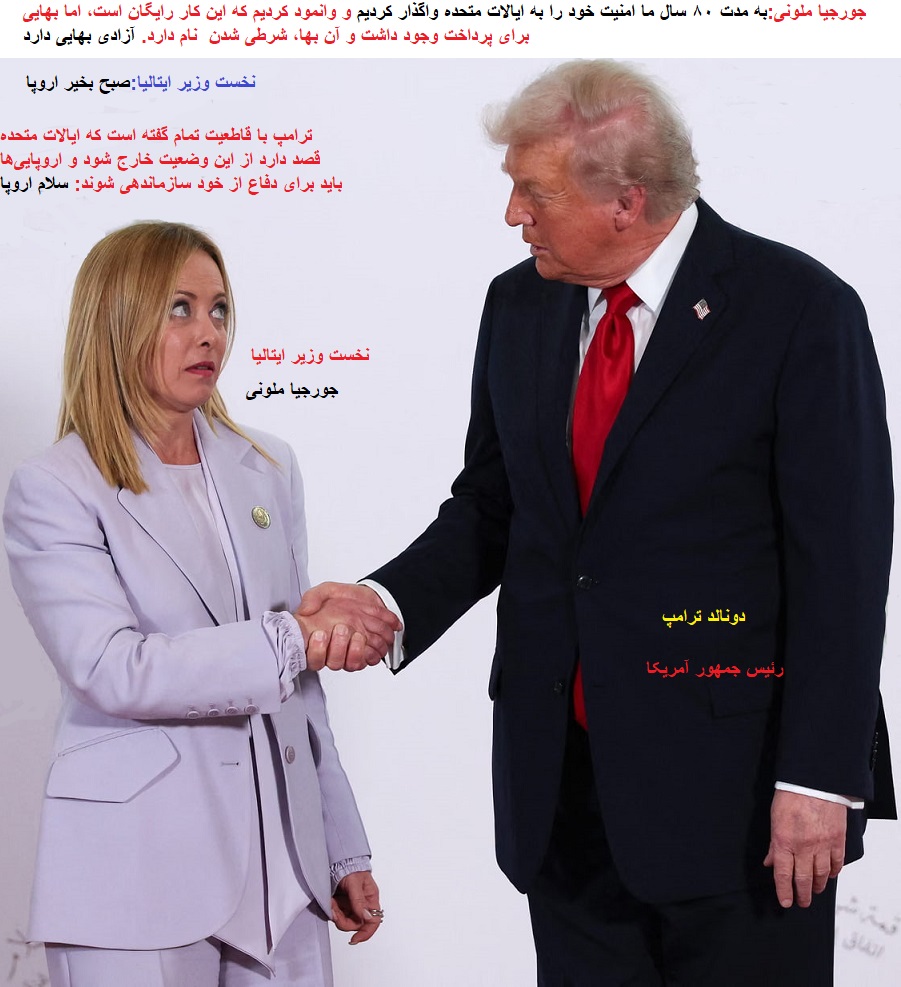 «نخست وزیرایتالیا» گفت:«به مدت هشتاد سال ما امنیت خود را به ایالات متحده واگذار کردیم و وانمود کردیم که این کار رایگان است، اما بهایی برای پرداخت وجود داشت و آن بها، شرطی شدن نام دارد. آزادی بهایی دارد.»