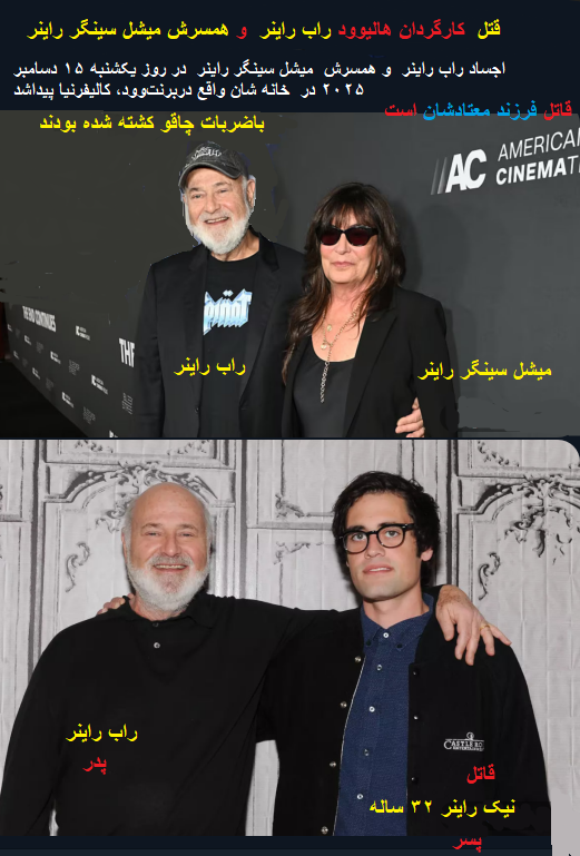 «راب راینر» و «میشل سینگر راینر» درروز یکشنبه ۱۴ دسامبر ۲۰۲۵(۲۳ آذر ۱۴۰۴) در خانهشان(لسآنجلس) مرده پیدا شدند.قاتل پسرشان است.