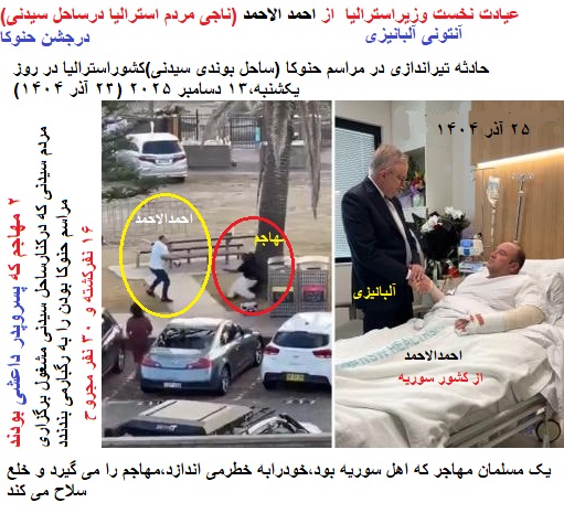 توضیح مدیریت سایت-پیراسته فر:تیراندازی مرگبار در«مراسم حنوکا»(جشن نور یهودیان)در«ساحل نمادین بوندی سیدنی»کشوراسترالیا ۲۵ نفرکشته ومجروح شدند.