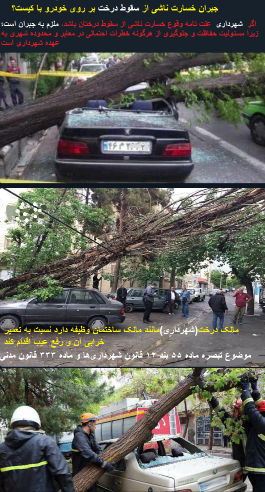 جبران خسارت ناشی از سقوط درخت بر روی خودرو با کیست؟