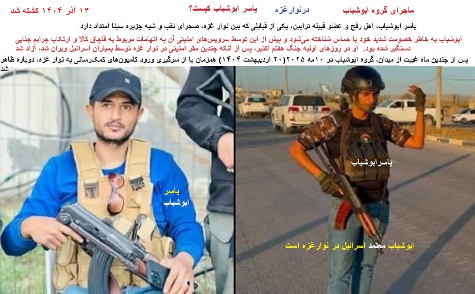 توضیحات مدیریت سایت-پیراسته فر:«یاسر ابوشباب» در(۱۳ آذر ۱۴۰۴)کشته شد.