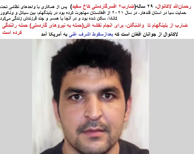 «رحمانالله لاکانوال، ۲۹ ساله» است و پس از همکاری با واحدهای نظامی تحت حمایت «سیا»(C.I.A) در «استان قندهار» در سال ۲۰۲۱ از افغانستان مهاجرت کرده بود. او در «بلینگهام»(بین سیاتل و ونکوور کانادا) ساکن شده بود و در آنجا با همسر و چند فرزندش زندگی میکرد.