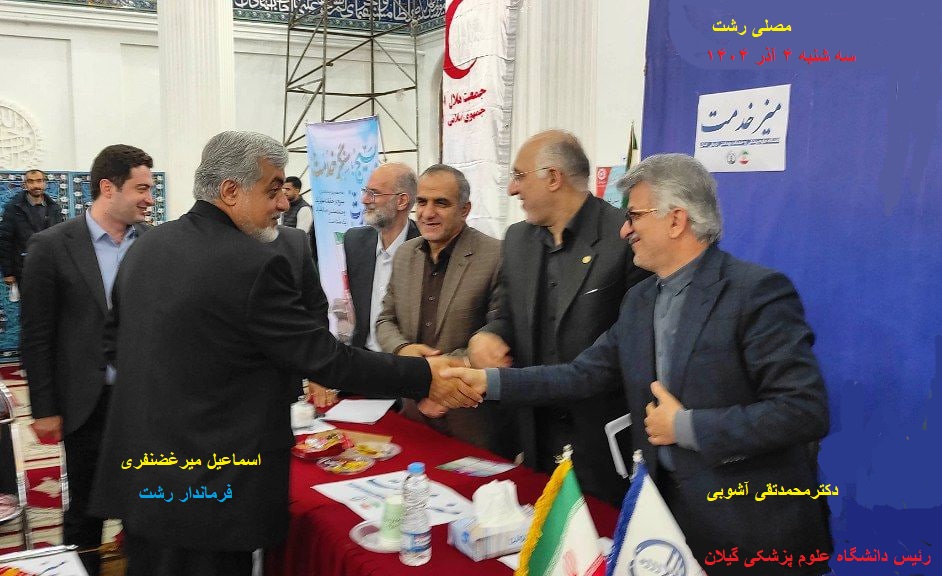 «دکتر محمدتقی آشوبی»(رئیس دانشگاه علوم پزشکی گیلان)،«اسماعیل میرغضنفری»(فرماندار رشت) «میزخدمت ادارات رشت درمصلی رشت»(سه شنبه)۴ آذر ۱۴۰۴