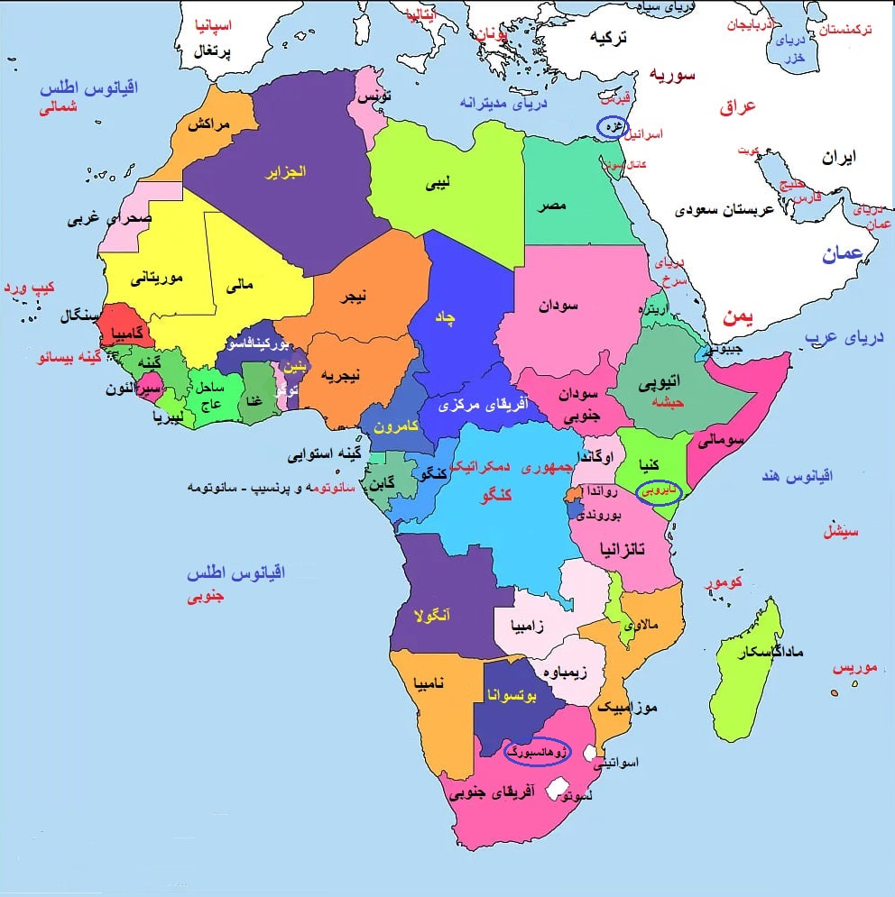 آفریقای جنوبی(ژوهانسبورگ)...کنیا(نایروبی)....اسرائیل(تل آویو)....فلسطین(غزه) ....نقشه