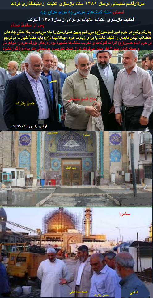 «سردارقاسم سلیمانی درسال ۱۳۸۲ ستاد بازسازی عتبات عالیات رابنیانگذاری کردند»البته