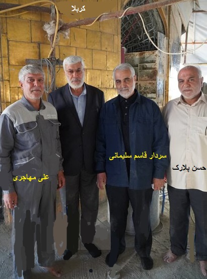 بترتیب از راست:«علی مهاجری»، «سردارقاسم سلیمانی»، «حسن پلارک» در حرم امام حسین(کربلا)