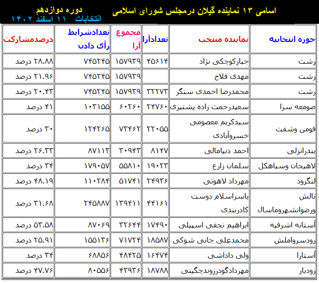 اسامی نمایندگان گیلان درمجلس شورای اسلامی(دوره دوازدهم)