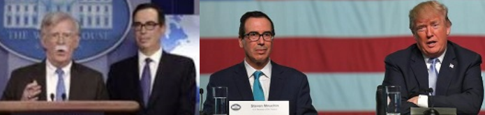 و«استیو منوشین» وزیر خزانهداری در کنفرانسی مطبوعاتی خبرنگاران را از آن آگاه کردند، بولتون به نقل از منبعی آگاه از آشفتگی در شورای امنیت ملی آمریکا خبر داده است.
