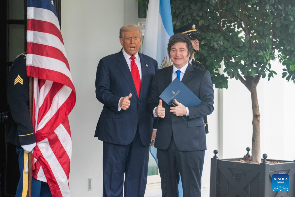 «دونالد ترامپ»(رئیس جمهور) در کاخ سفید، سهشنبه، ۱۴ اکتبر ۲۰۲۵، در واشنگتن، از«خاویر میلی»( رئیس جمهور آرژانتین) استقبال کرد.