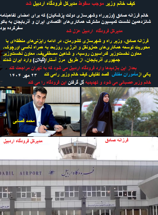 «کیف خانم وزیر»(علت عزل مدیرکل فرودگاههای استان اردبیل)چهارشنبه ۲۳ مهر ۱۴۰۴