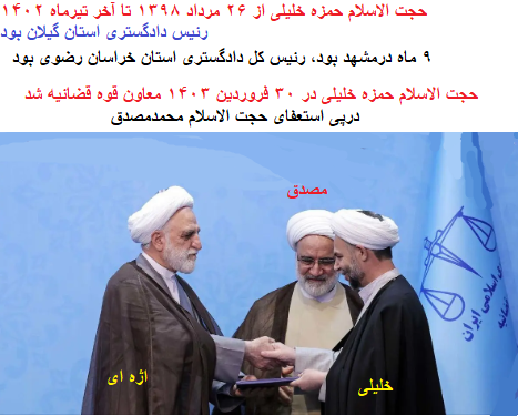 در روز چهارشنبه (۲۴ دی ۱۴۰۴)جلسه بررسی عملکرد دادگستری استانها در خصوص اغتشاشات اخیر با حضور حجت الاسلام حمزه خلیلی( معاون اول قوه قضاییه)، حجتالاسلام علی عبداللهی( رئیس مرکز حفاظت و اطلاعات قوه قضاییه)،حجت الاسلام علی القاصی مهر( رئیس کل دادگستری استان تهران)، علی صالحی (دادستان تهران)، سیدزاده (معاون نظارت بر اختیارات تفویضی و امور اجرایی معاونت اول قوه قضاییه) برگزار شد.