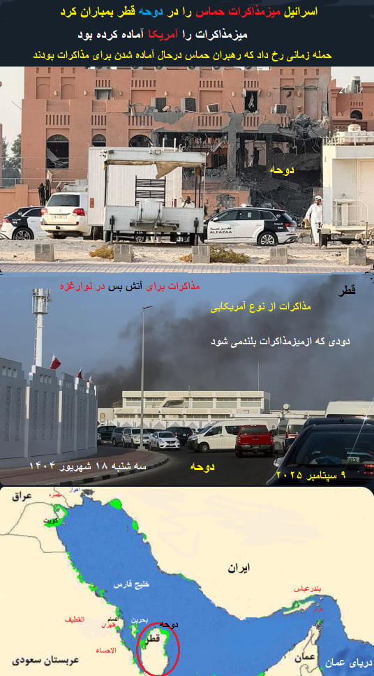 «حمله اسرائیل به دوحه(قطر)»سه شنبه ۹ سپتامبر ۲۰۲۵(۱۸ شهریور ۱۴۰۴)