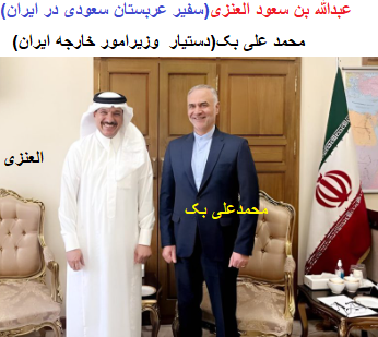 «عبدالله بن سعود العنزی»(سفیر عربستان سعودی در ایران) و «محمد علی بک»(مدیر کل خلیج فارس وزارت امور خارجه ایران) ۱۴۰۲