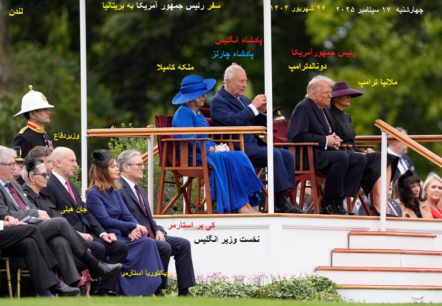 «رئیس جمهورآمریکا» روز چهارشنبه سپتامبر ۲۰۲۵ (۲۶ شهریور ۱۴۰۴) مورد استقبال گرمی از «شاه چارلز»(پادشاه بریتانیا) و «ملکه کامیلا»(همسرچارلز) قرار گرفت