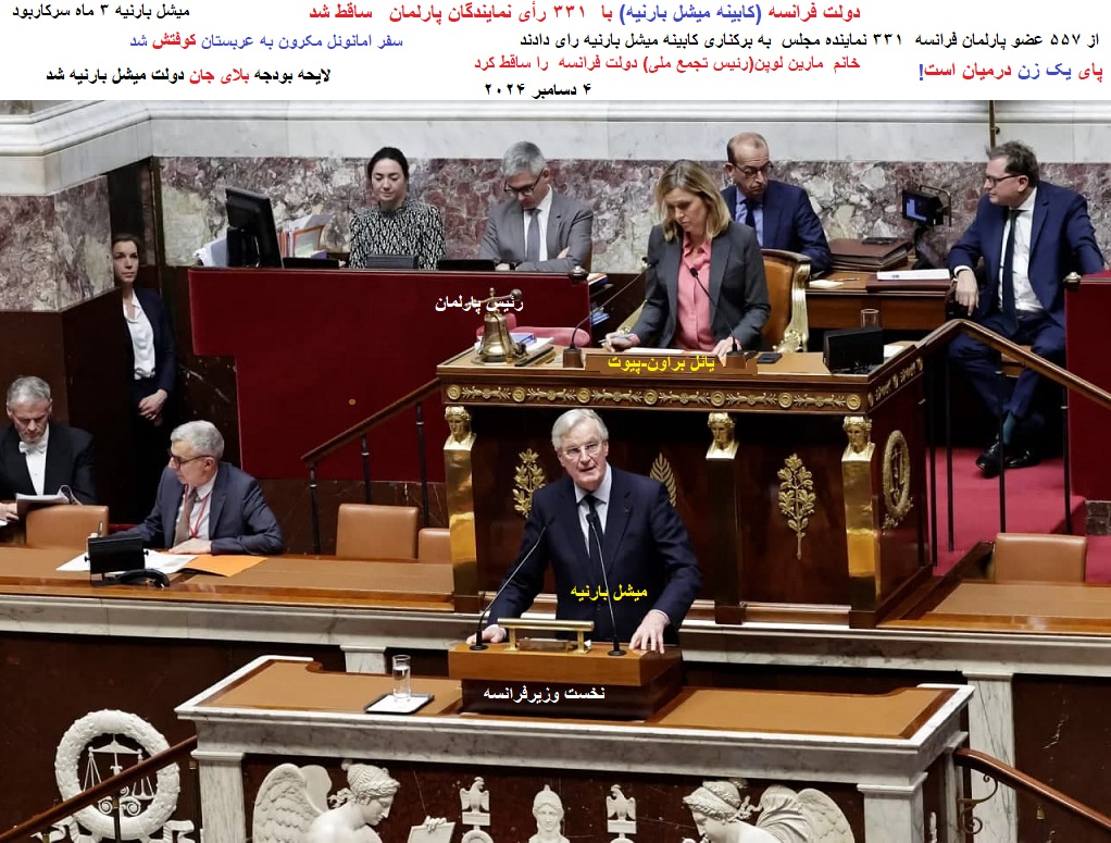 «میشل بارنیه»(نخست وزیر فرانسه) روز چهارشنبه ۴ دسامبر ۲۰۲۴(۱۴ آذر ۱۴۰۳) برکنارشد.