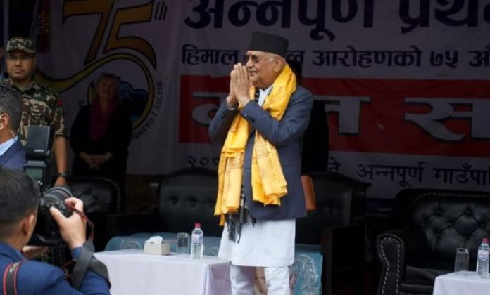 در در ۱۵ فوریه ۲۰۱۸(۲۶ بهمن ۱۳۹۶) «مراسم تحلیف کی پی شارما اولی، نخست وزیر نپال»(در کاخ ریاست جمهوری در کاتماندو )برگزارشد،«۸ سال بعد» درروز سه شنبه ۹ سپتامبر ۲۰۲۵(۱۸ شهریور ۱۴۰۴) یک روز پس سرکوب معترضان که منجربه کشته ومجروحیت ۱۲۰نفر شد، استعفا داد.