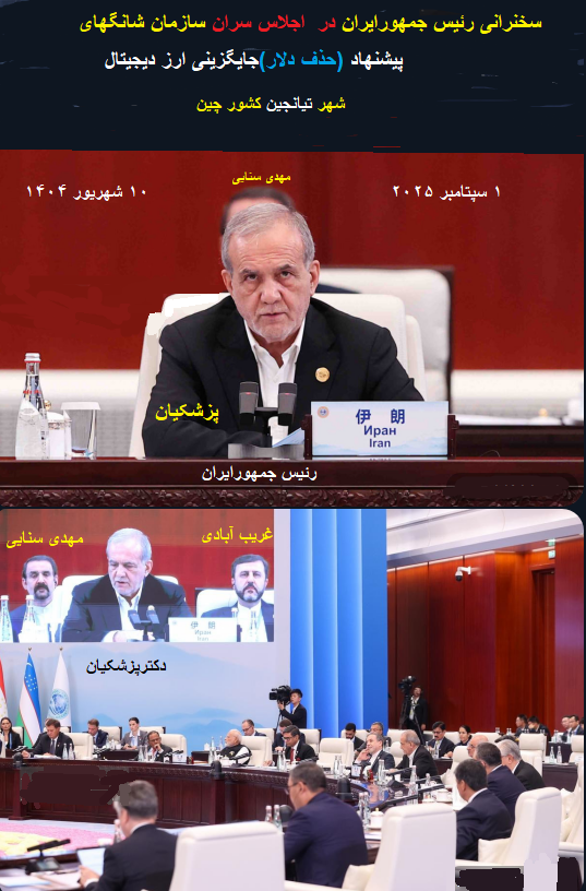 پیشنهاد رئیس جمهورایران در اجلاس سران سازمان شانگهای برای حذف دلار:ارزهای دیجیتال بانکهای مرکزی جایگزین دلارشود./۱ سپتامبر ۲۰۲۵(۱۰ شهریور ۱۴۰۴)