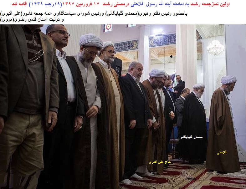 «اولین نمازجمعه رشت به امامت آیت الله رسول فلاحتی»درمصلی رشت ۱۷ فروردین ۱۳۹۷(١٩رجب ١۴٣٩) اقامه شد.